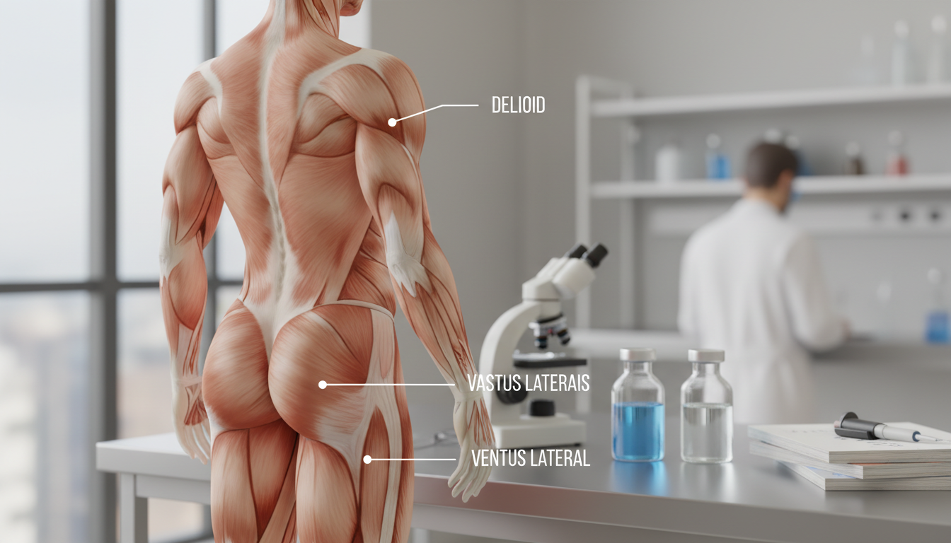 The most common and accessible sites for a self-administered intramuscular peptide injection are the thigh and the shoulder. The hip is also an excellent site but can be harder to reach on your own.