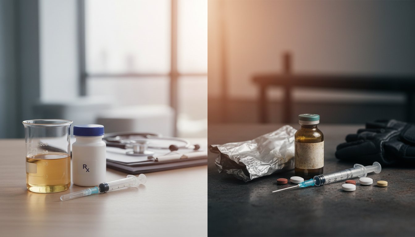 The difference comes down to three things: purpose, dose, and supervision. Prescribed testosterone, or TRT, is used to treat a diagnosed medical condition called hypogonadism, where the body doesn't produce enough testosterone on its own. The goal is to restore levels to a normal, healthy range under a doctor's care. In contrast, illegal steroid use involves taking synthetic testosterone variants, often at extremely high doses, to force muscle growth beyond natural limits without medical oversight (DEA, 2026). This significant difference in dosage and intent is what separates therapy from abuse.