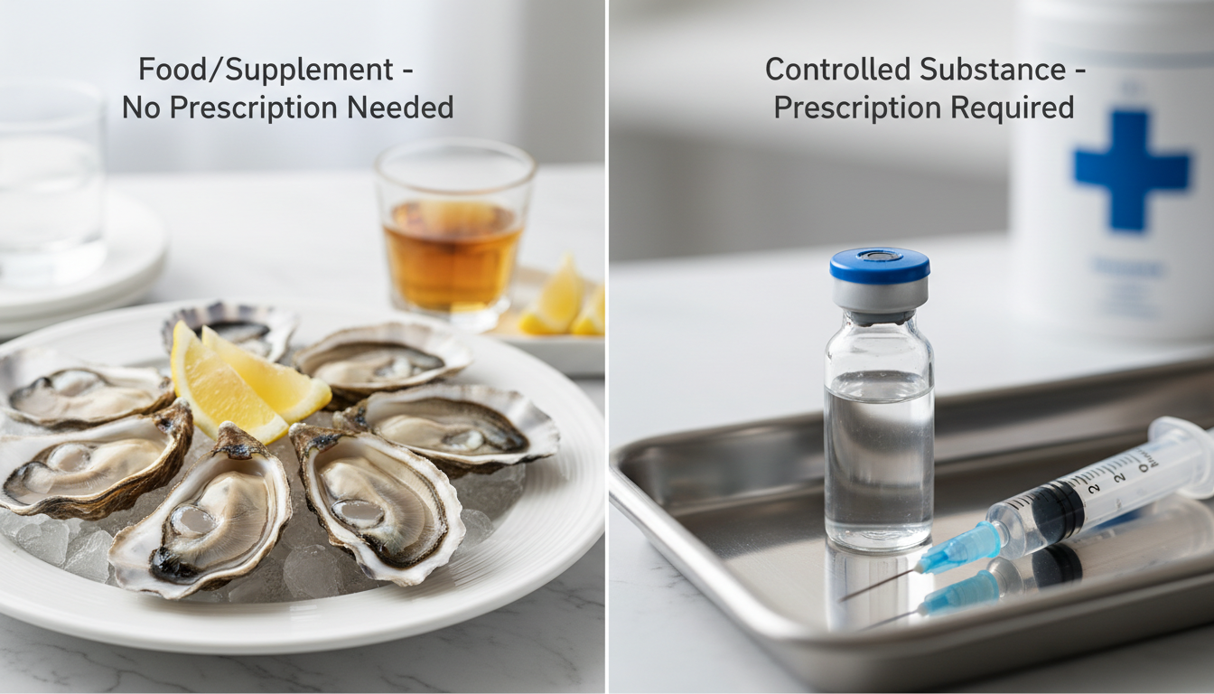 The way you access oysters versus medical testosterone treatments highlights a fundamental difference in how they are regulated. One is a food, and the other is a controlled substance.