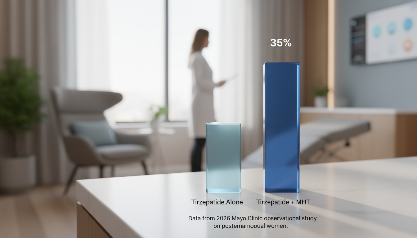 The most compelling evidence for this came from a landmark Mayo Clinic study published in March 2026. Researchers observed that postmenopausal women who were on menopausal hormone therapy (MHT) lost an astounding 35% more weight when also taking tirzepatide (Zepbound) compared to women taking tirzepatide alone (ScienceDaily). This observational study, published in The Lancet Obstetrics, Gynaecology, & Women's Health, suggests a powerful interaction between estrogen and GLP-1 medications. While more research is needed to prove causation, it points to a groundbreaking strategy for managing weight and cardiometabolic risk in women over 50 (Mayo Clinic News Network).